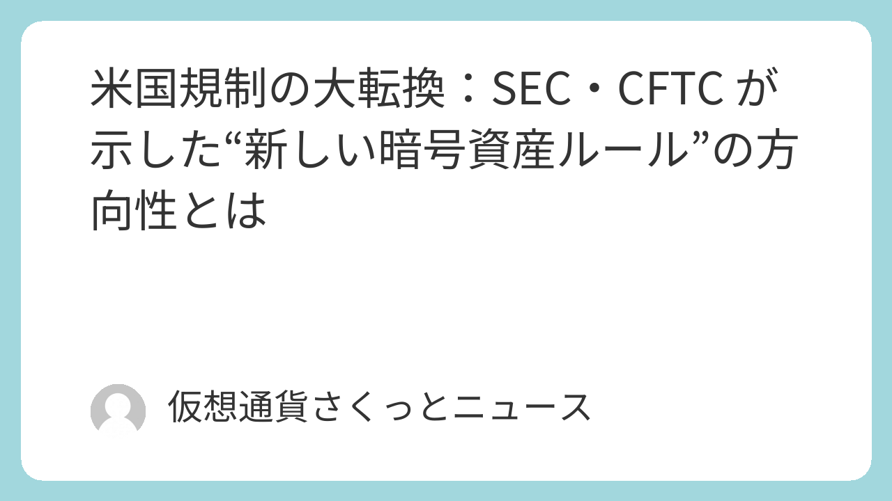CoinDesk の報道を総合すると、SEC・CFTC の最近の動きは “暗号資産市場を潰すための規制”ではなく、“市場を成熟させるための規制”へと変化している。